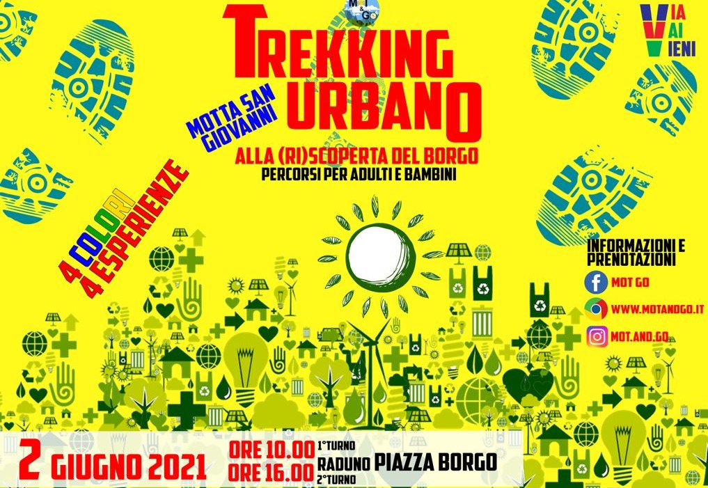 Il progetto “Via Vai Vieni” nasce dal desiderio di mostrare le bellezze inesplorate, i vicoli di una volta, i belvedere panoramici che si affacciano sul Borgo Antico di Motta San Giovanni. Si è pensato ad una riscoperta dei territori al ritmo lento del camminare, sulle tracce di storie passate, edifici esempi d’arte e genio architettonico, atmosfere e scorci. Il trekking urbano, oltre ad essere un’attività che fa bene al corpo e alla mente, permette di esplorare il paesaggio naturalistico che avevamo dimenticato. Via Vai Vieni: 4 percorsi, 4 colori, 4 avventure!